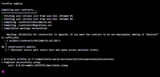 Compile Smart Contracts. Use the commandtrufflecompile to compile your smart contracts.