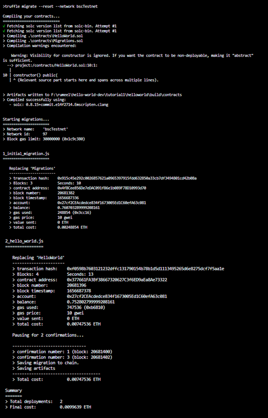 Migrate Smart Contracts. Use the following command to deploy/migrate your smart contracts onto the JuncaChain Testnet