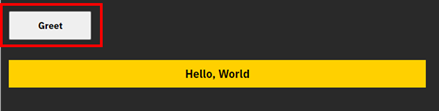 Click on Greet Button to display a message, by default it's Hello, World.