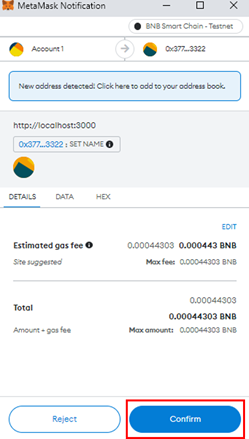 Confirm the transaction when MetaMask notification pops up.