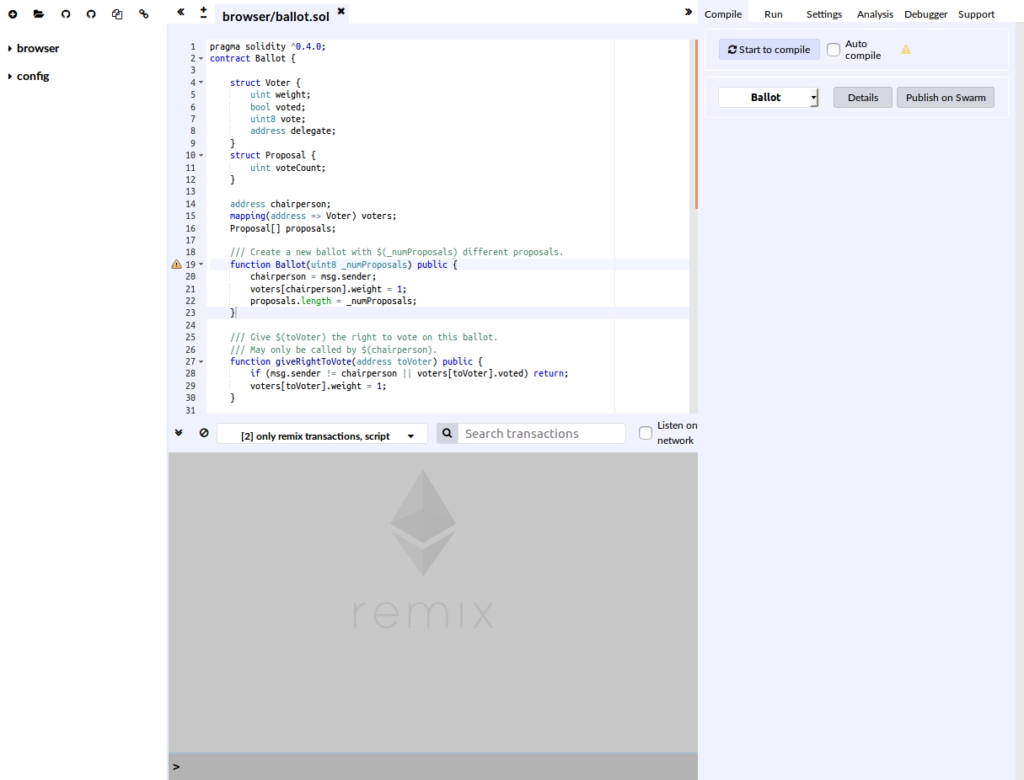 For the sake of demonstrating what we can achieve using Remix IDE, we’ll use an example contract and we’ll see how we can: