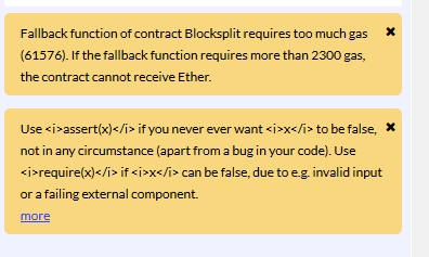 The first warning is raised if the gas requirements of functions are too high, and the second one is raised if the require() or assert() functions are not used appropriately.