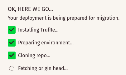 Once your deployment has started processing, you'll see a list of steps Truffle Teams is doing to prepare for your deployment.